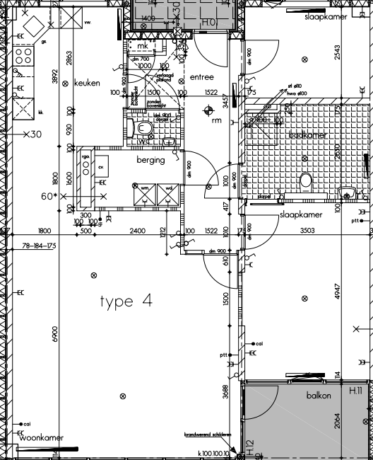 - C.v.-/bergruimte, opstelling c.v.-ketel en aansluiting wasapparatuur;