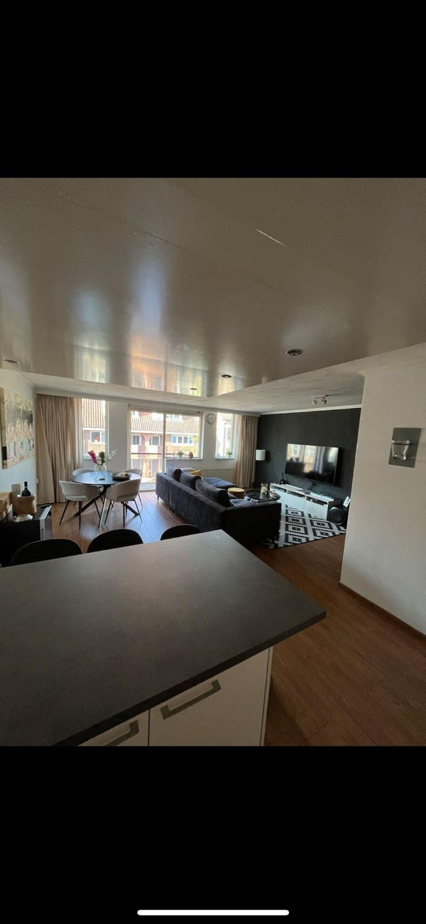 Ruime en lichte woonkamer met moderne inrichting. Dankzij de grote ramen geniet u van veel daglicht en een prettige leefruimte. De woonkamer is voorzien van een comfortabele zithoek en een eethoek.