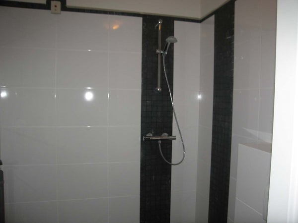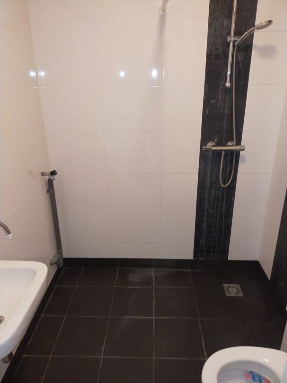 Badkamer voorzien van douche, toilet en wastafel en wasmachine aansluiting.