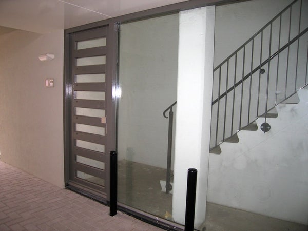 Centrale entree met bellentableau en brievenbussen. Trapopgang naar verdiepingen.