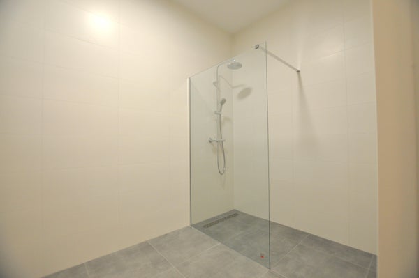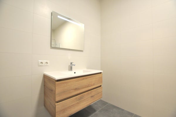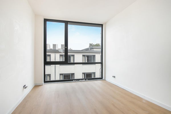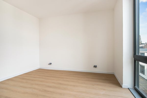 Verder zijn er twee grote slaapkamers gesitueerd aan de voorzijde van het appartement. De royale badkamer is tussengelegen van de woonkamer en slaapkamers, en is uitgerust met een inloopdouche, wastafel met ombouw en spiegel. Het toilet en de berging zijn separaat te bereiken vanuit de hal.