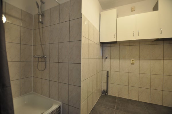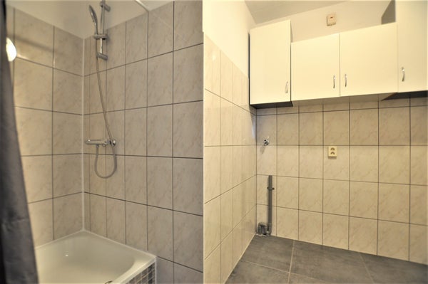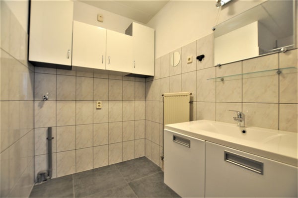 Nette badkamer met douche, wastafel en wasmachine aansluiting. Apart toilet.