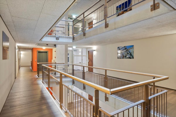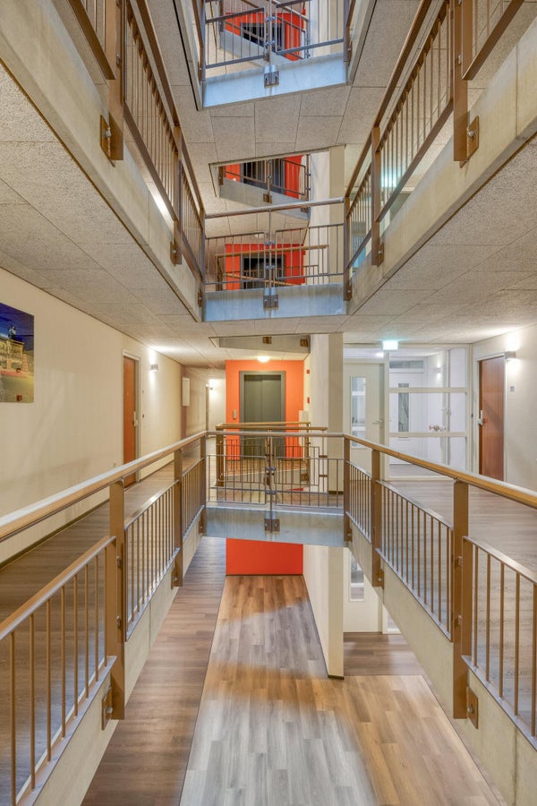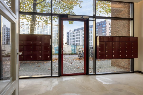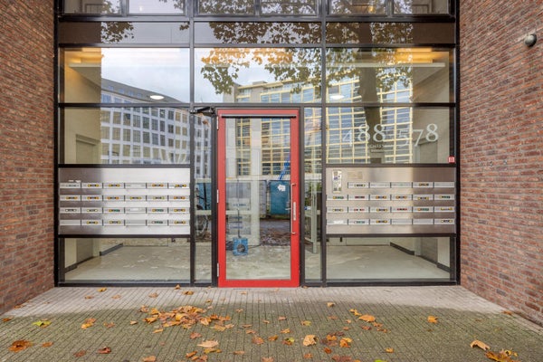 Representatieve entree met o.a. bellentableau, lift, trappenhuis en elektrische deuropener met intercominstallatie.