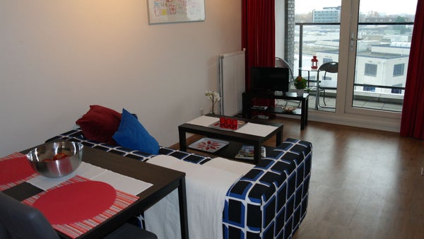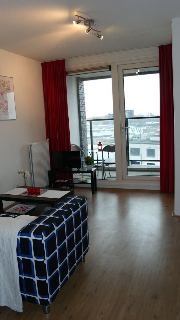 Leuk en modern afgewerkt gemeubileerd 2-kamer appartement van circa 35 m2 met balkon op de 4e woonlaag. Gelegen in het appartementencomplex ‘Arhus’ welke is gebouwd in 2011 en beschikt over een gemeenschappelijke fitnessruimte, sauna, wasserette (Miele) en diverse algemene binnen- en buitenruimtes met loungebanken voor de bewoners.
