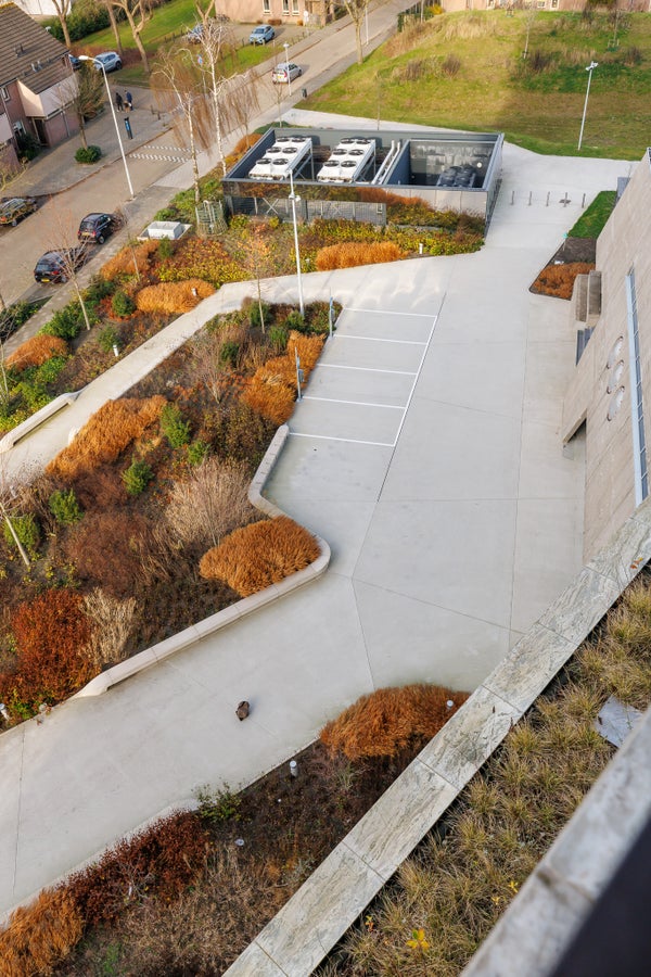 Op de begane grond vind je een grand café en diverse werkruimtes, ideaal voor een lunchafspraak of om even te werken buiten de deur. Ook vind je in de directe omgeving supermarkten, sportscholen, restaurants en culturele hotspots zoals het Muziekgebouw en De Effenaar.