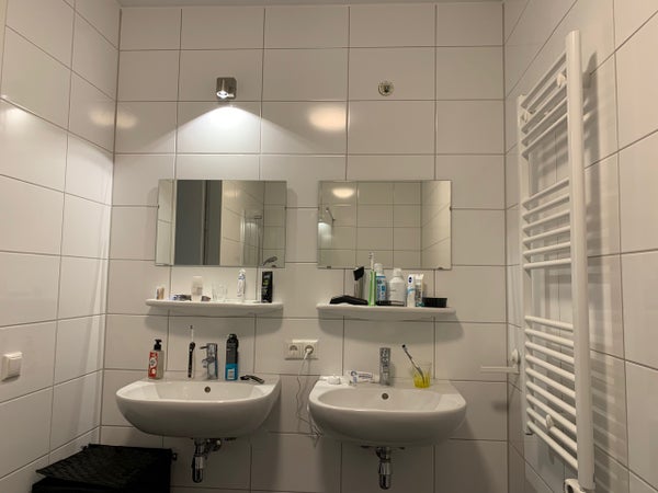 - (Deels) betegelde badkamer voorzien van douche en dubbele wastafel;