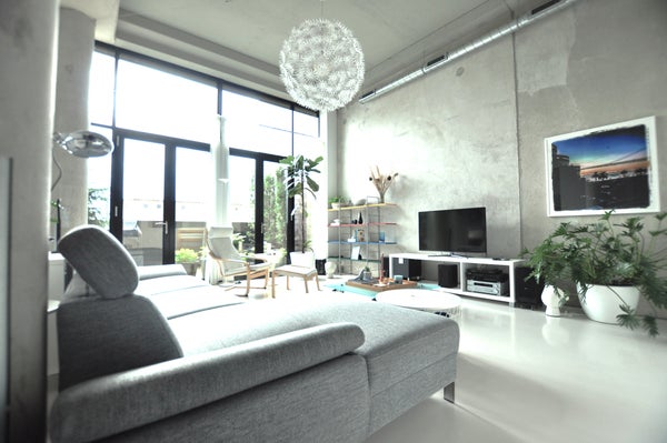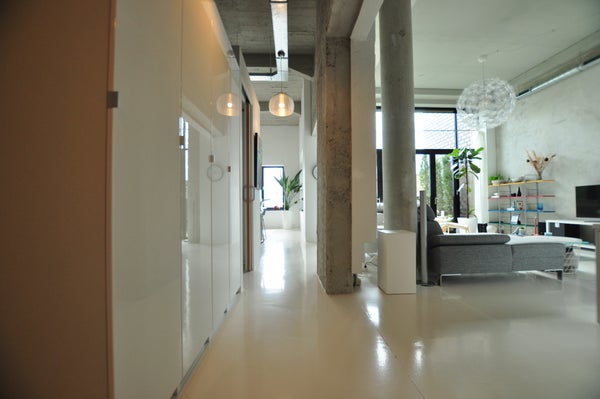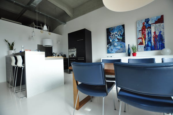 Zodra je de loft binnenkomt word je verrast door de fraaie, open structuur van het geheel en het industriële karakter met z’n strakke zichtlijnen en grote raampartijen.