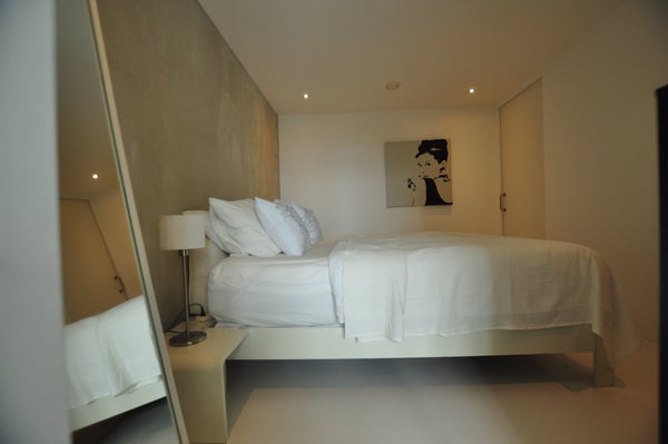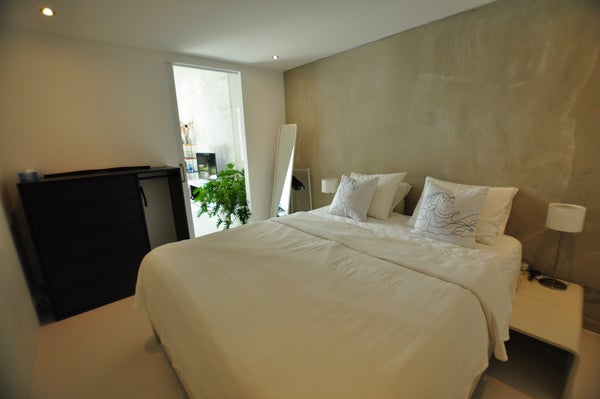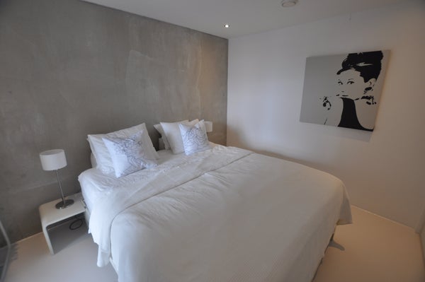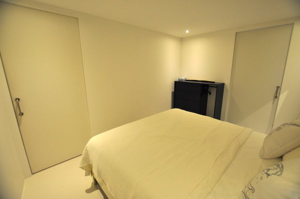 De master bedroom grenst aan het woongedeelte en kan middels een schuifdeur worden afgescheiden. Deze ruimte is voorzien van een heerlijk tweepersoonsbed, ladekast en inbouwkast.
