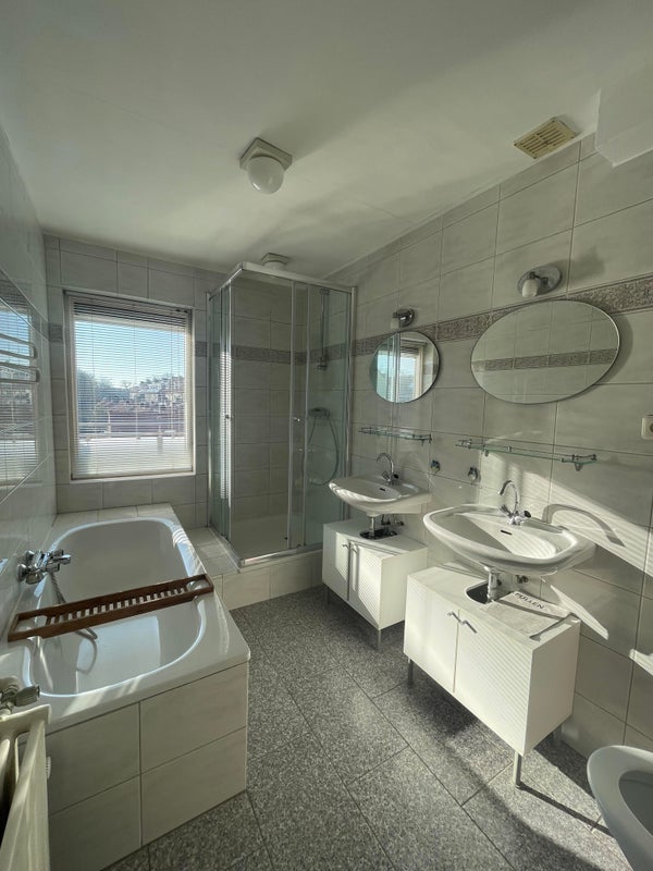 • De eerste verdieping bevat tevens een royale badkamer met een apart ligbad, een douchecabine, twee wastafels en een toilet.