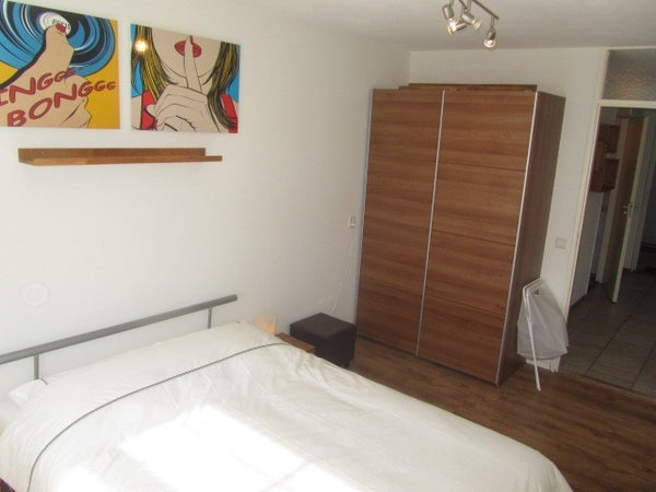 Voorzien van laminaatvloer, ingericht met kast en 2-persoonsbed.