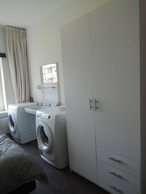 Slaapkamer II: Ruime slaapkamer voorzien van luxe laminaatvloer, schilderwerk wanden, stucwerk plafond, kleine bergruimte, vaste wastafel, aansluiting voor een wasmachine en raampartij met fraai uitzicht op de tuin aan de achterzijde.