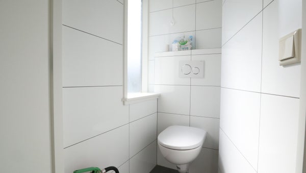 - Nieuwe badkamer met douche, wastafel en toilet.