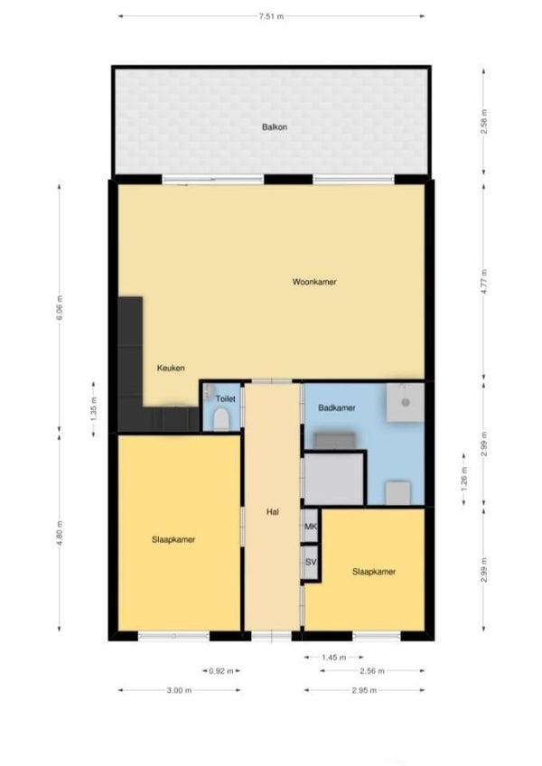 Hal voorzien van een pvc vloer biedt toegang tot alle vertrekken. Aan de voorzijde van het appartement zijn aan weerszijde van de hal, de slaapkamers gelegen. De master bedroom is voorzien van vloerbedekking.
