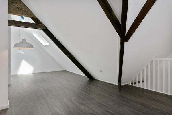 Middels een vaste trap toegang tot de ruime L-vormige 2e woonlaag van ca. 24 m². Deze woonlaag is voorzien van twee dakramen welke zorgen voor veel lichtinval. Deze woonlaag is uitermate geschikt om gebruikt te worden als royale slaapzolder.
