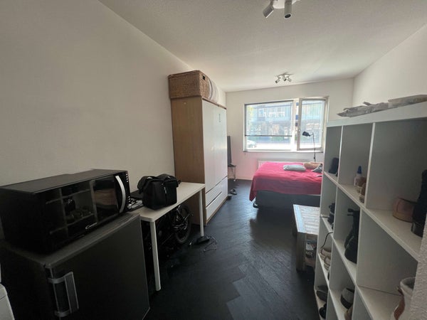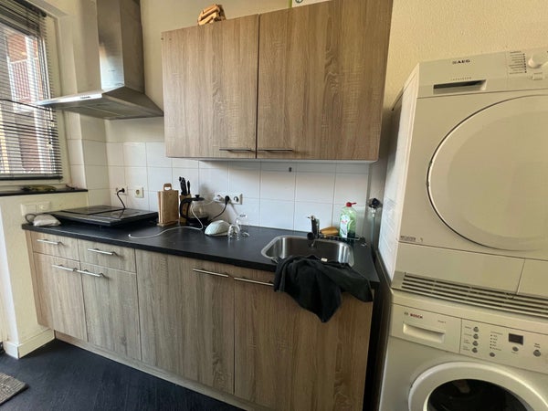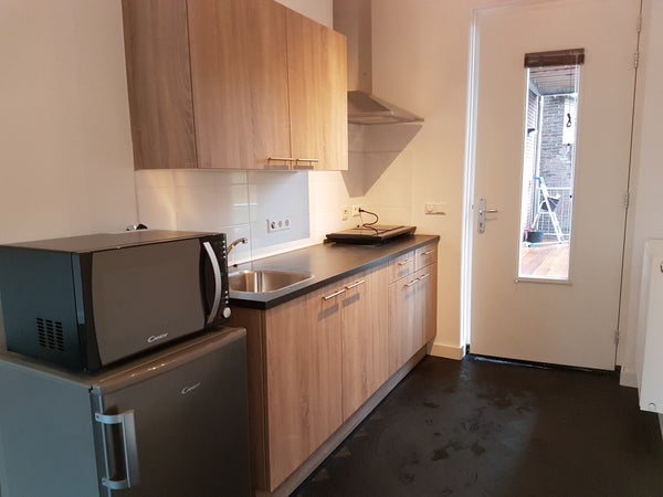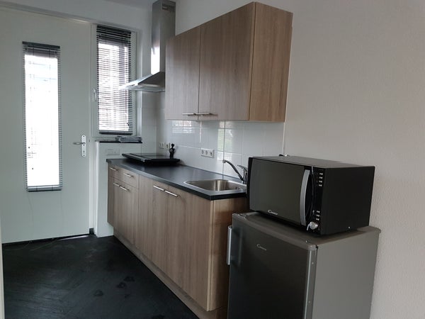Deze ruime studio is beschikbaar voor studenten en heeft een oppervlakte van 50m2. Het bevindt zich in een kleinschalig appartementencomplex, gebouwd in 2018, net buiten de ring en dichtbij het stadscentrum. De studio is soft gemeubileerd met een privékeuken en een laminaatvloer van donker eiken. De woonkamer heeft een nieuwe keuken met koelkast, vriezer, combimagnetron en elektrische kookplaat, en er is een aansluiting voor een wasmachine. Het beschikt over een badkamer met douche, toilet en wastafel. De huurprijs is exclusief gas, water, elektriciteit, internet, TV en €60 servicekosten per maand. Een borg van €1000 en een tijdelijke contract zijn vereist, en het is geschikt voor twee studenten. Huisdieren en roken zijn niet toegestaan.