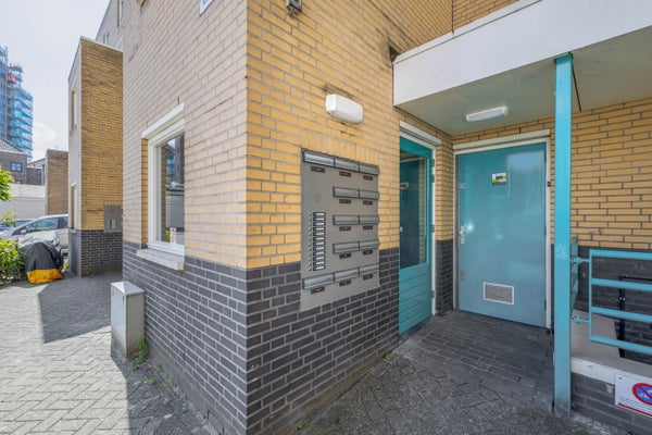 Centrale entree met toegang tot lift, trappenhal, de brievenbussen en het bellentableau. Vanuit hier toegang tot de eigen individuele berging en het afgesloten parkeerterrein waar het mogelijk is een parkeerplek te huren (€ 150 per maand).