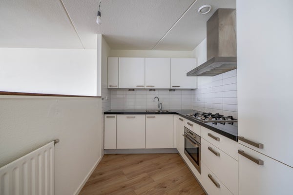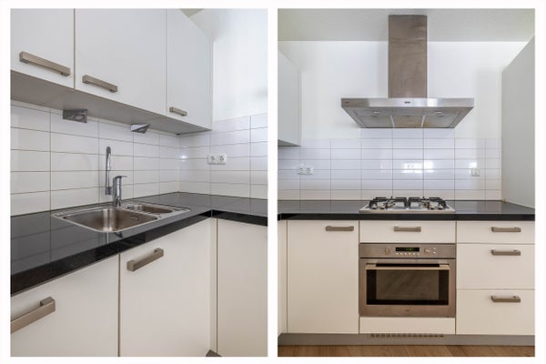 De keuken in een L-opstelling is van alle gemakken voorzien. Je vindt hier een vaatwasser, gaskookplaat, rvs afzuigkap, combi-oven, een koelkast en een vriezer. Daarnaast zijn er meer dan voldoende opbergmogelijkheden.