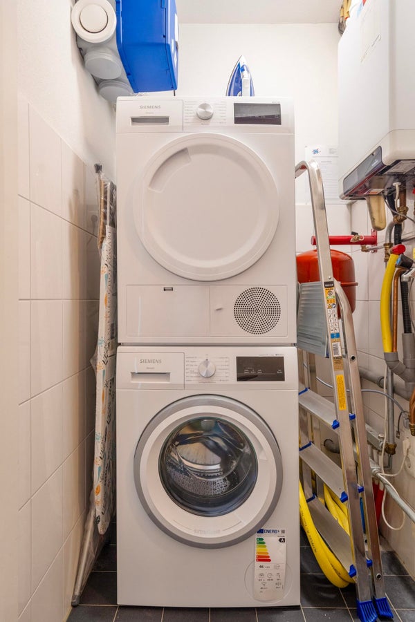 Aparte ruimte met Siemens wasmachine en droger, plus cv-installatie.