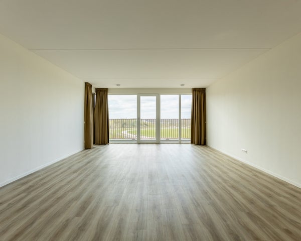 Afgezien van de natte ruimtes, heeft het gehele tussenappartement een mooie, warme PVC-vloer die voorzien is van vloerverwarming. De grote ramen van plafond tot vloer zorgen voor veel natuurlijke lichtinval en een ruimtelijk gevoel. De ramen zijn voorzien van luxe jaloezieën of verduisterende gordijnen. De living met open keuken is ruim opgezet. De moderne keuken met witte kastjes en zwarte stalen handgrepen is uitgerust met RVS Bosch inbouwapparatuur, namelijk een koel-vriescombinatie, inductiekookplaat, vaatwasser en oven-magnetron. Vanuit het woongedeelte is er een deur naar het grote balkon met schitterend vrij uitzicht.