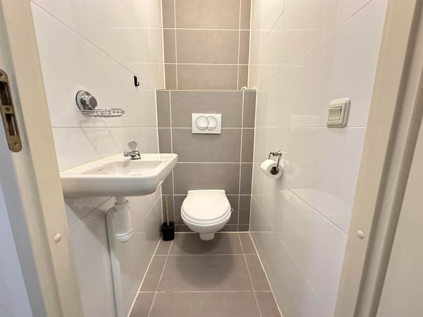 Het gehele appartement is voorzien van laminaat vloer en de badkamer en het toilet zijn betegeld.