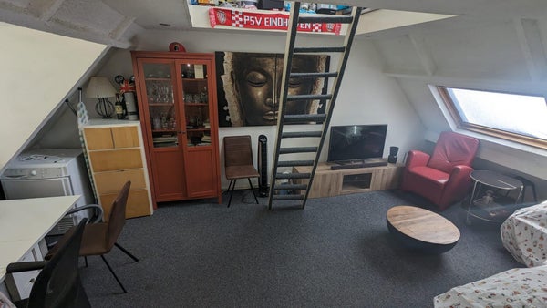 Op zeer goede lokatie (Van Beethovenlaan) te huur een mooie bijna (toilet gedeeld met 1 persoon) zelfstandige woonruimte voor 1 net werkend/studerend persoon op de 2e verdieping. De totale huurprijs is 925 euro. Dat is incl. 175 euro voorschot voor gas, water, electriciteit, gemeentelijke heffingen,snel- internet en kabel tv. De woonruimte heeft een woon/slaapkamer met hoogslaper, keuken (met kookplaat, koelkast, diepvries en afzuigkap), douche en toilet. Mgv. tuin,berging en wasmachine. Dubbele beglazing. Gratis parkeren voor de deur en op 10 minuten van TUE, Philips, Fontys, ASML, station, Hightechcampus etc. etc. De totale oppervlakte is ruim 50m2. Huisdieren NIET toegestaan en huursubsidie NIET mogelijk! Geen minimale huurperiode voor de huurder. Officiele verhuur c.q. inschrijven bij gemeente geen probleem c.q. officieel huurcontract. Borg 925 euro. Aanvaarding 1 december 2025. Belangrijk: Svp reageren met naam, leeftijd, werk/studie en tel.r!!!!