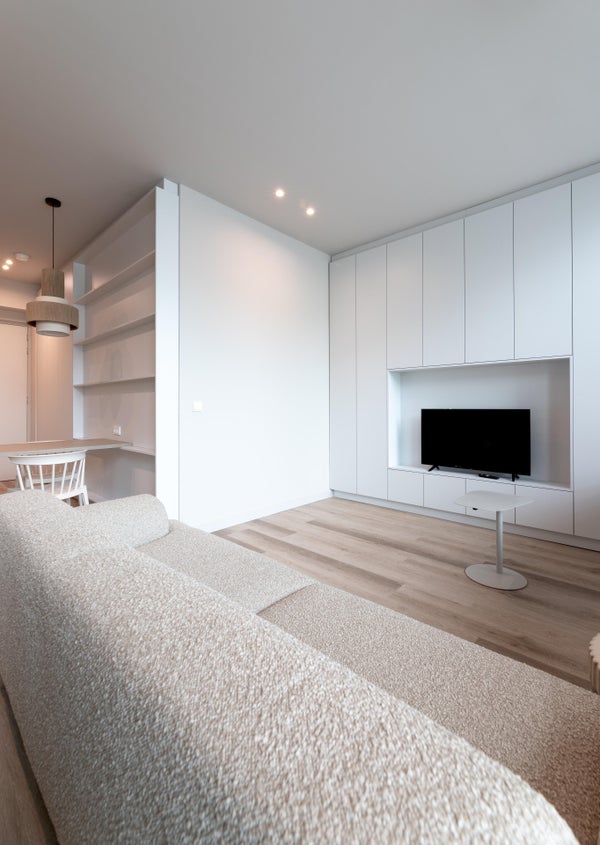 De volledig uitgeruste keuken biedt alles voor culinair gemak, terwijl de moderne badkamer een oase van rust vormt. Grote ramen zorgen voor veel natuurlijk licht, waardoor de efficiënt ingerichte ruimte nog lichter en ruimer aanvoelt. Elk detail van het appartement is met zorg afgewerkt, wat zorgt voor een luxe uitstraling op topniveau.