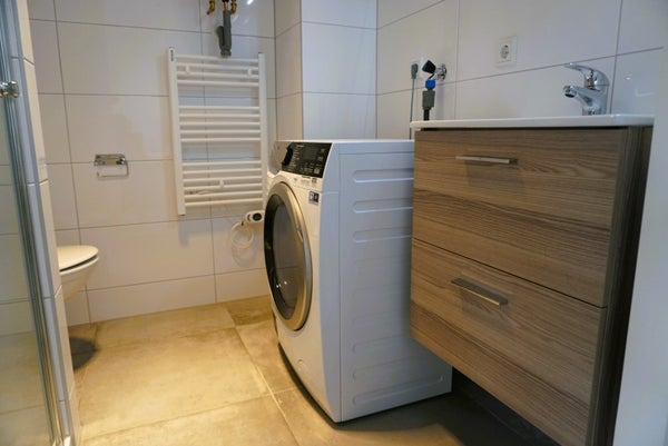 Het appartement heeft twee ruime slaapkamers, ideaal als hoofdslaapkamer en logeerkamer of thuiskantoor. De moderne badkamer is voorzien van een inloopdouche, wastafel met badmeubel en spiegel. Een apart toilet is toegankelijk vanuit de hal.