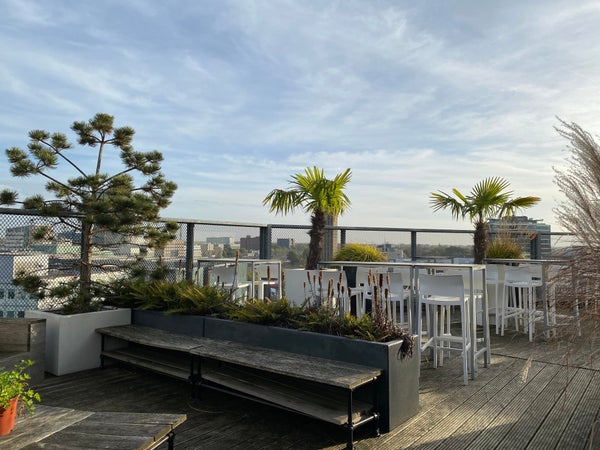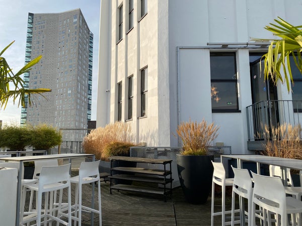 Als bewoner heb je ook toegang tot een gezamenlijke ruimte met een groot dakterras op de 6e verdieping, waar je heerlijk kunt ontspannen en genieten van het uitzicht over het bruisende centrum van Eindhoven.