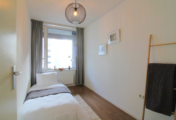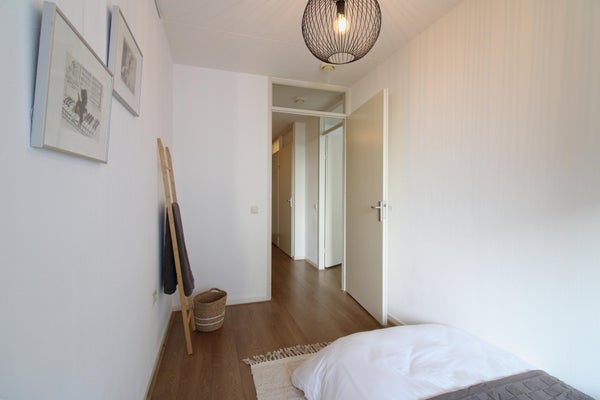 Het appartement beschikt over 2 riante slaapkamers, beide ook voorzien van dezelfde nette laminaat vloer en raamdecoratie.
