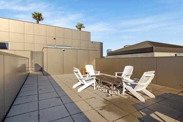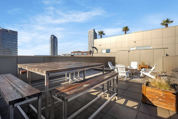 Gezamenlijk dakterras: Een heerlijke plek om buiten te zijn en te genieten van de stad, samen met medebewoners;