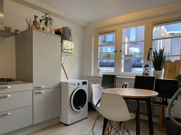 Bij het betreden van het appartement kom je uit in de half open keuken met zitgedeelte. De keuken is voorzien van divers apparatuur zoals een vaatwasser, combimagnetron, koelkast, vriezer, gasfornuis & was-droogcombinatie.