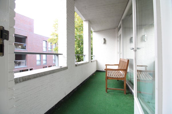 Middels een ruim portiek is de eigen voordeur te bereiken. Entree/hal met meterkast en ruimte voor garderobe. Moderne toiletruimte met hangcloset en fonteintje. Keurig verzorgde, nette badkamer voorzien van een wastafel, een ligbad en een separate douche. Royale en bovenal lichte woonkamer met laminaatvloer, grote raampartijen en toegang tot het ruime (overdekte) balkon. Semi-open keuken met keurig verzorgde L-vorm keukeninstallatie (Siematic) voorzien van een gaskookplaat, een (motorloze) afzuigschouw, een koel/vriescombinatie en een vaatwasser. Zeer praktische bijkeuken met wasmachineaansluiting, cv-ketel en provisieruimte. Grote 1e slaapkamer aan de balkonzijde en een 2e eveneens ruime slaapkamer, beiden afgewerkt met een mooie laminaatvloer.
