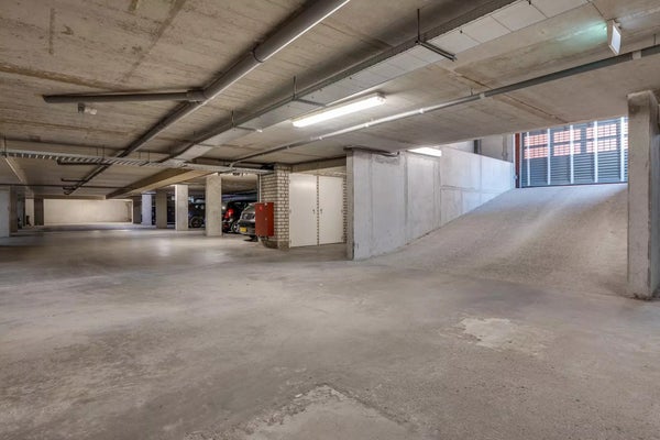 Beveiligde parkeerkelder met eigen parkeerplaats en een ruime berging voorzien van elektra.