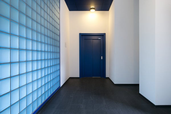 Gezamenlijke entree met bellentableau, brievenbussen en liftinstallatie;