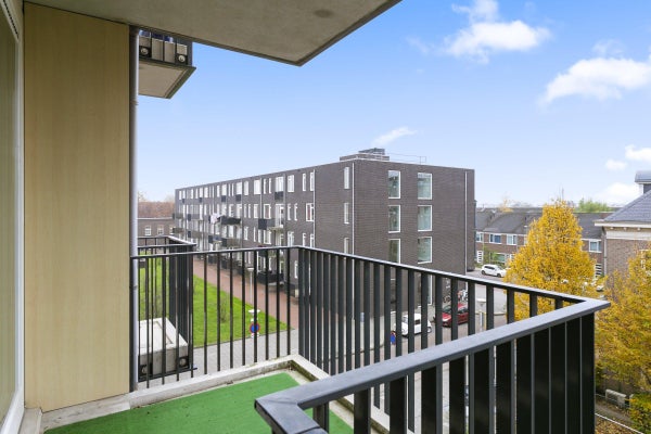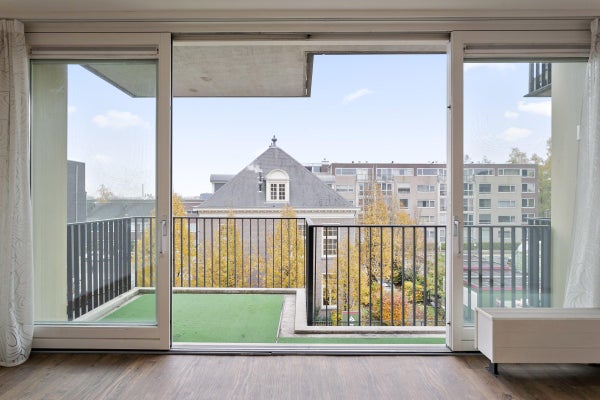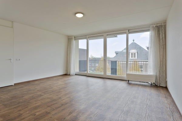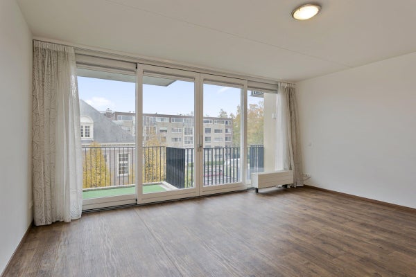 De woonkamer is licht en voorzien van een grote schuifpui welke toegang geeft tot een balkon.