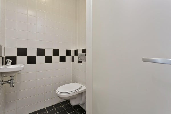Bij binnenkomst in het appartement bevindt zich rechts het toilet en aan de linkerzijde de ruime douche welke is voorzien van een inloopdouche, een wastafel met meubel en een radiator.