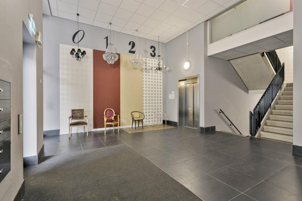 Het appartement is uitgevoerd met digitale centrale toegangsdeuren die buiten de sleutel ook te openen zijn met een tag.