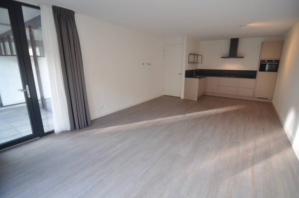 Ruime en lichte woonkamer voorzien van een fraaie designkeuken met alle gewenste apparatuur zoals een 5-pits gaskookplaat, vaatwasser, koelkast, combi-magnetron en afzuigkap. Vanuit de woonkamer middels deur toegang tot het terras. Het terras is gelegen aan de gezellige afgesloten gemeenschappelijke binnentuin welke gebruikt kan worden door de overige bewoners van het complex.