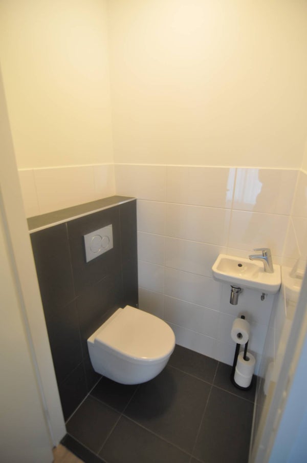 Hal voorzien van toegang tot de diverse vertrekken. Ruime inpandige berging voorzien van een aansluiting voor de wasmachine en CV-installatie. Gastentoilet voorzien van fonteintje.