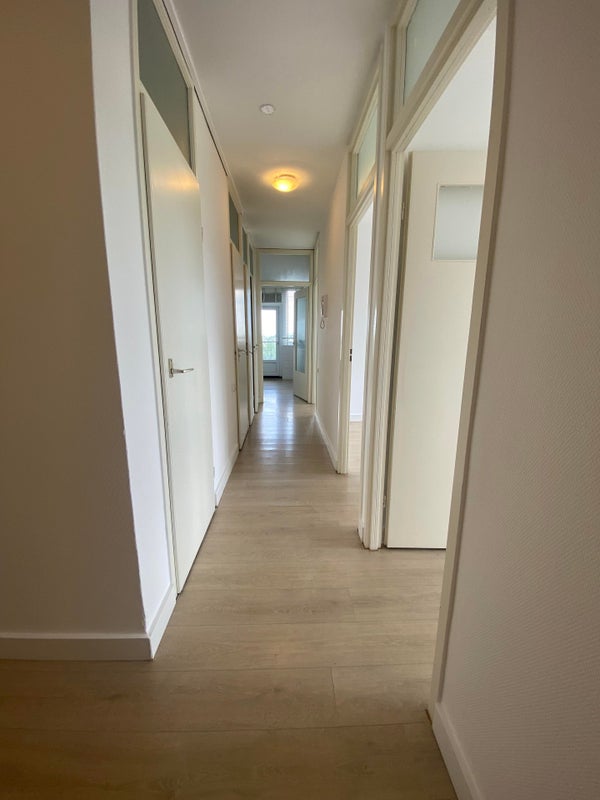 De hal is voorzien van een laminaatvloer. Vanuit de hal is er toegang tot slaapkamers, badkamer, keuken en woonkamer.