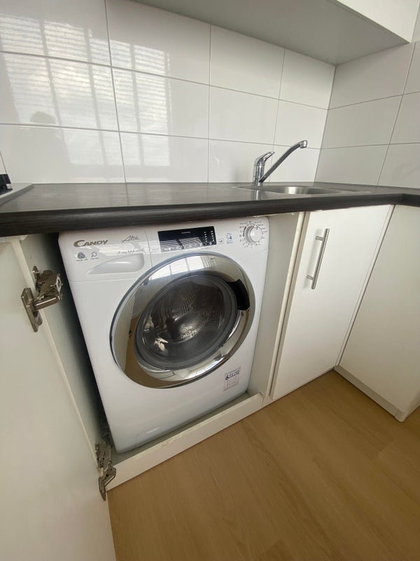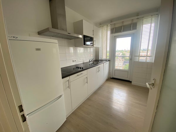 De gesloten keuken is voorzien van diverse inbouwapparatuur zoals; vaatwasser, koelkast, 4-pit inductieplaat, combi-oven, wasmachine/droger. Vanuit de keuken is er toegang tot het balkon.