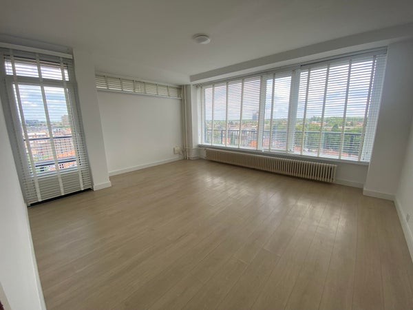 De woonkamer is voorzien van een laminaatvloer, ruime raampartijen welke veel lichtinval bieden met een mooi uitzicht over Eindhoven.