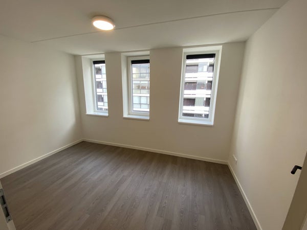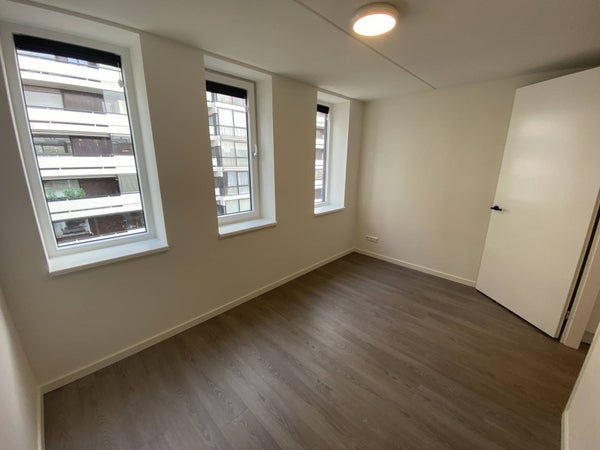 De slaapkamer is gelegen aan de achterzijde van het appartement. Eveneens voorzien van pvc vloer, verduisterende gordijnen en verlichting.