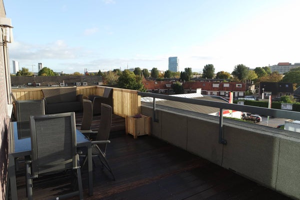 Entree in de hal met sfeervolle laminaat vloer en toegang tot alle vertrekken. Ruime woonkamer met veel lichtinval en met toegang tot enorm dakterras van ca. 50 m². Keuken voorzien van de volgende apparatuur: gaskookplaat, RVS-schouwkap, combi oven met magnetron, vaatwasser, koelkast en vriezer. Separate inpandige berging met wasmachine en droger. Slaapkamer 1 van ca. 12 m² voorzien van inbouwkasten. Slaapkamer 2 van ca. 6 m². Separaat toilet met fonteintje. Badkamer voorzien van ligbad met thermostaatkraan, douche met thermostaatkraan en wastafel.