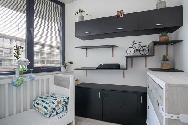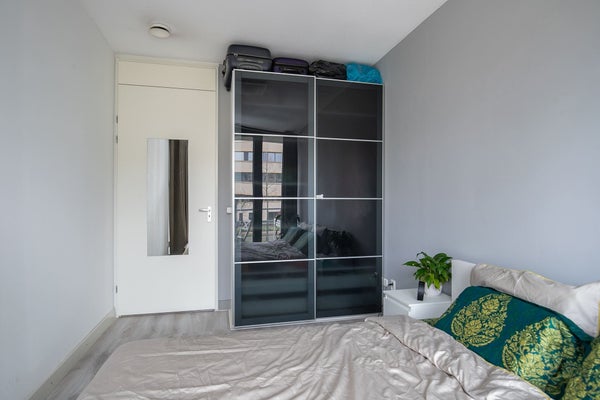 De twee slaapkamers zijn beide afgewerkt met een laminaatvloer. Rolluiken zijn aanwezig voor de ramen. De tweede slaapkamer wordt momenteel gebruikt als kledingkamer.