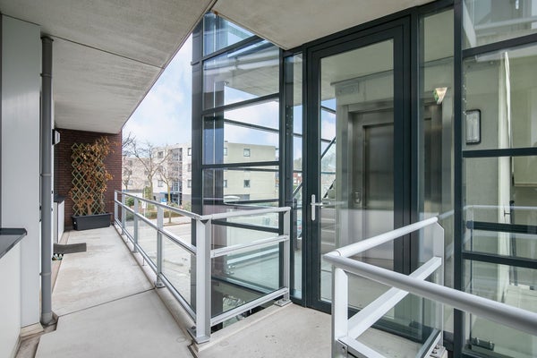 Op de begane grond is er een centrale entree met intercom en postkasten. De appartementen zijn te bereiken via een buiten galerij met een lift of de trap. Aan de andere kant van het gebouw is de gemeenschappelijke sauna, fitnessruimte en wasserij. Er is ook een gezamenlijke fietsenstalling.
