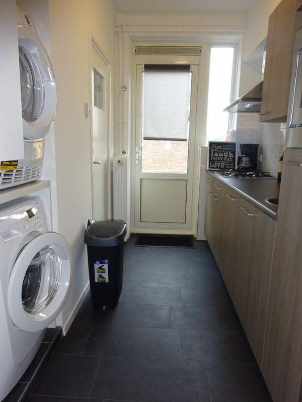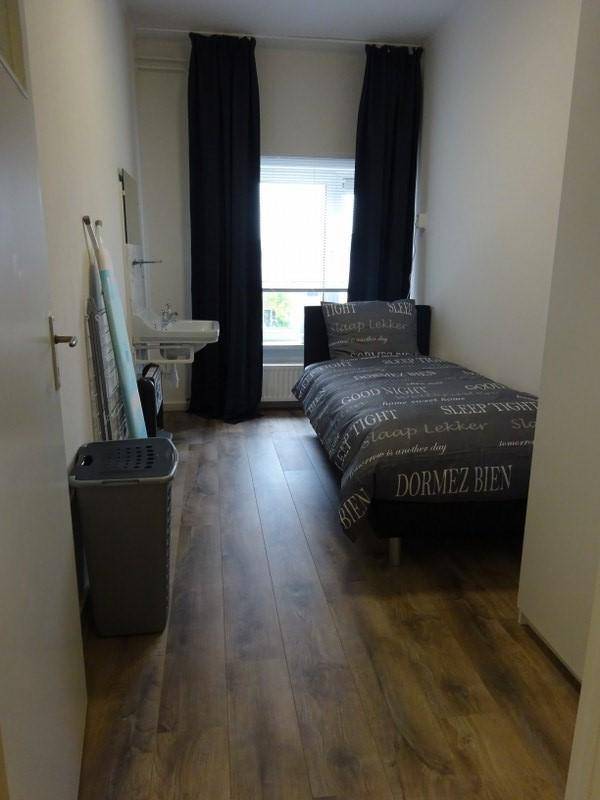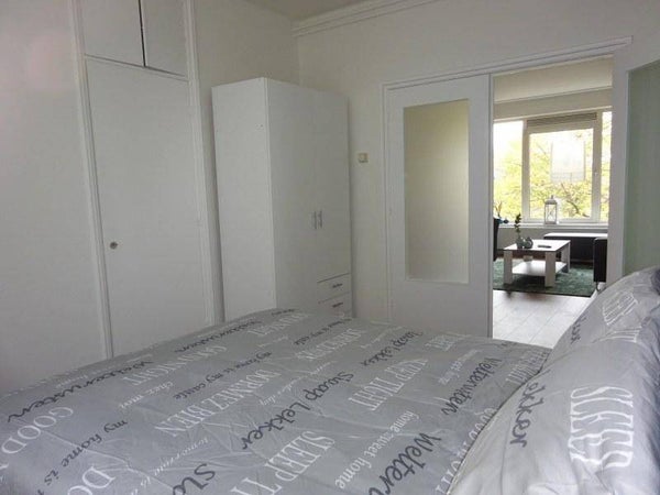 - De tweede slaapkamer is ongeveer 10 vierkante meter en gesitueerd aan de achterzijde van het appartement. Deze slaapkamer is voorzien van 1-persoonsbed. Op deze kamer is ook een wasmachine en droger aanwezig
