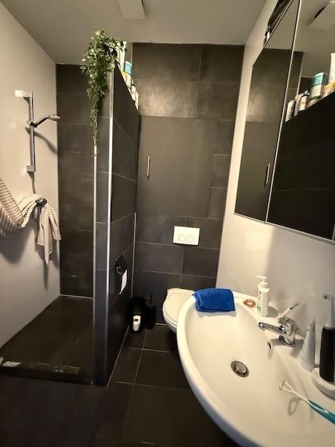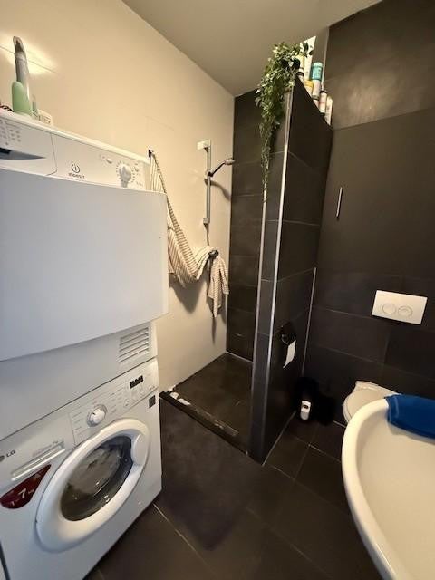 De badkamer is voorzien prachtige tegels met een hoge afwerking, voorzien van douche, toilet, wasbak en een aansluiting voor een wasmachine.