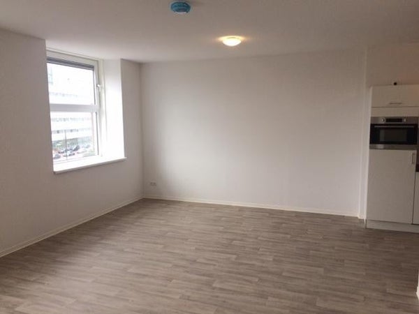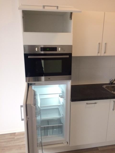 Een appartement met twee slaapkamers, badkamer en een woonkamer met een open keuken. De keuken is uitgerust met inbouwapparatuur (elektrische kookplaat, afzuigkap, vaatwasser en koel-vriescombinatie). De badkamer beschikt over een inloopdouche, wastafel, en een kast. Opstelplaats voor wasmachine/droger in een aparte ruimte.