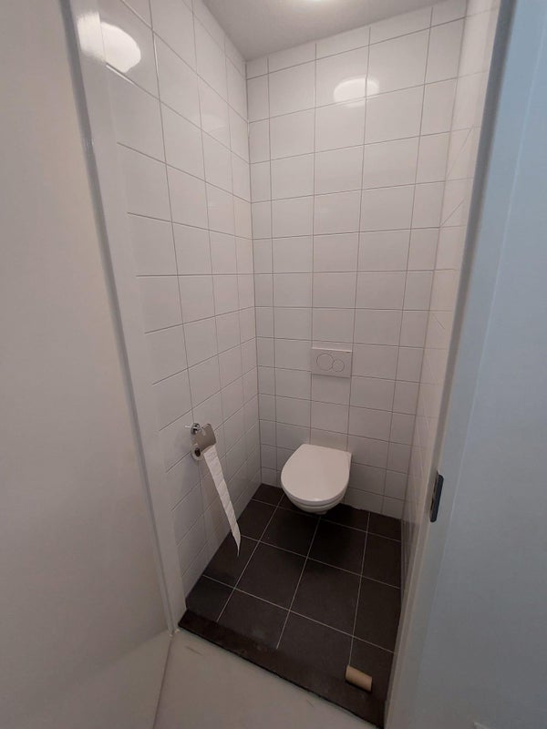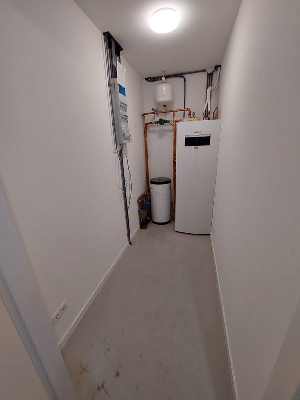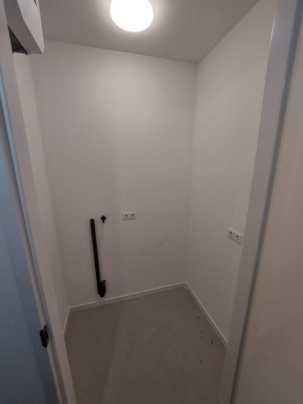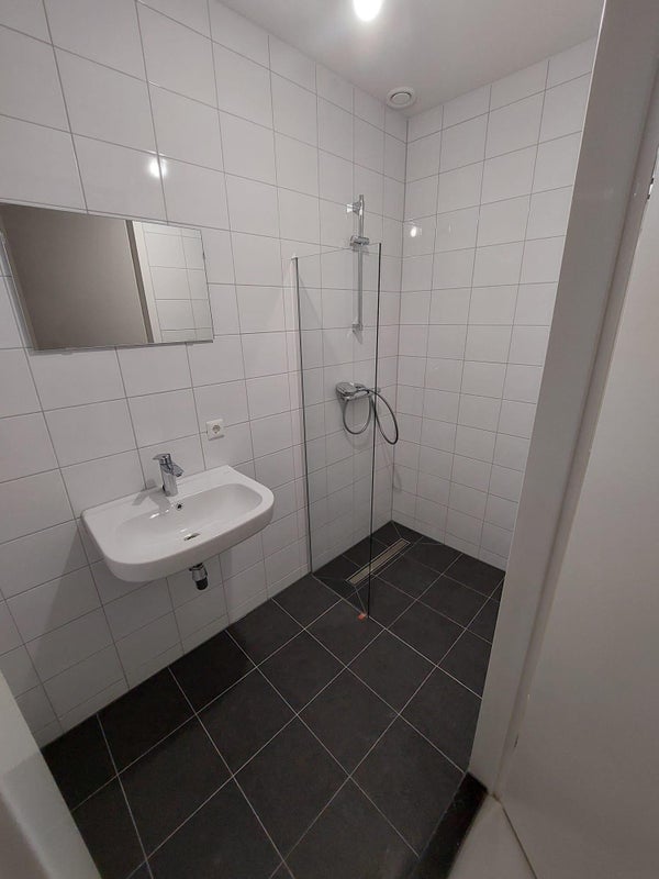 De badkamer is afgewerkt en uitgerust met een inloopdouche, wastafel en een spiegel met ingebouwde verlichting. Verwarming vindt plaats via een energiezuinige warmte-unit. De foto's in de advertentie zijn gemaakt tijdens de renovatie.